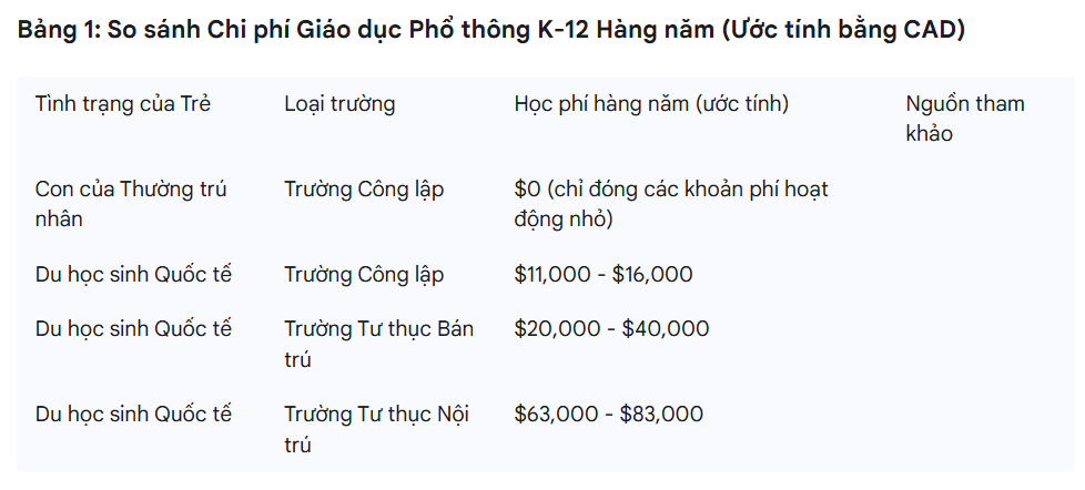Đối với các gia đình nhập cư, chi phí giáo dục là một trong những mối quan tâm hàng đầu. Canada nổi bật với một hệ thống giáo dục công lập không chỉ chất lượng cao mà còn có khả năng tiếp cận tài chính vượt trội cho thường trú nhân, tạo ra một lợi thế kinh tế rõ rệt và một khoản đầu tư vững chắc cho tương lai của gia đình. So với các điểm đến du học phổ biến khác như Hoa Kỳ và Vương quốc Anh, Canada thường có mức học phí phải chăng hơn, khiến nơi đây trở thành lựa chọn dễ tiếp cận hơn đối với nhiều sinh viên quốc tế.