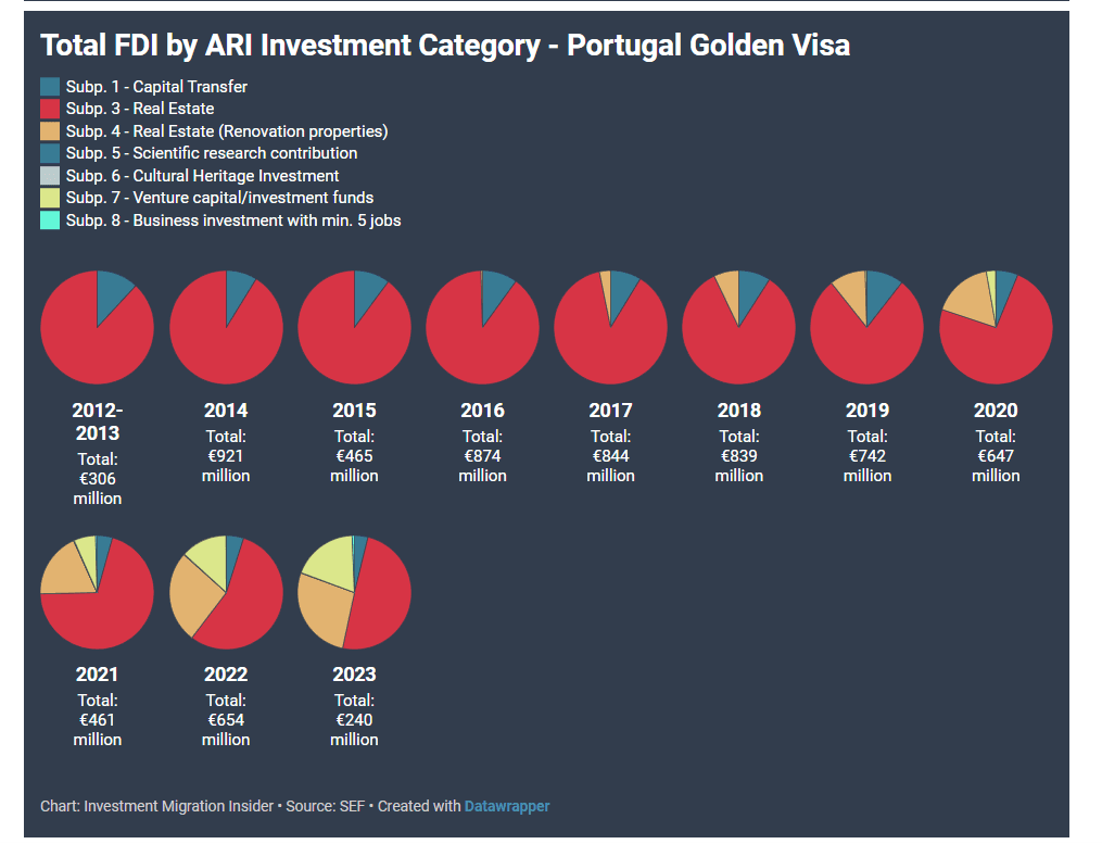 Hiện chương trình Golden Visa Bồ Đào Nha chỉ còn 5 triệu euro nữa là chạm mốc doanh thu 7 tỷ euro. Trong đó, có khoảng 6,2 tỷ euro thu được từ hình thức đầu tư vào bất động sản.