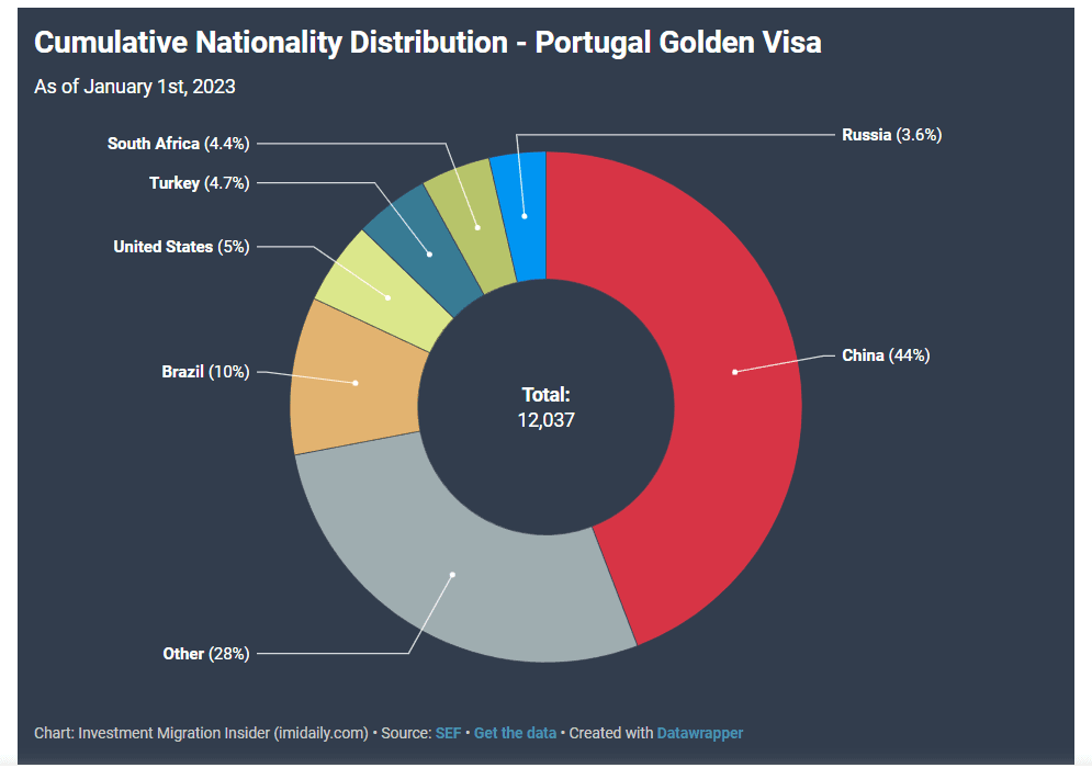 Tuy nhiên, nhờ vào lịch sử thống trị trong chương trình, hiện nay Nhà Đầu Tư Trung Quốc vẫn là nhóm người tham gia chương trình Golden Visa Bồ Đào Nha nhiều nhất. Nhà Đầu Tư Trung Quốc chiếm khoảng 44% tổng số thị thực vàng được cấp kể từ khi chương trình ra đời vào năm 2012.