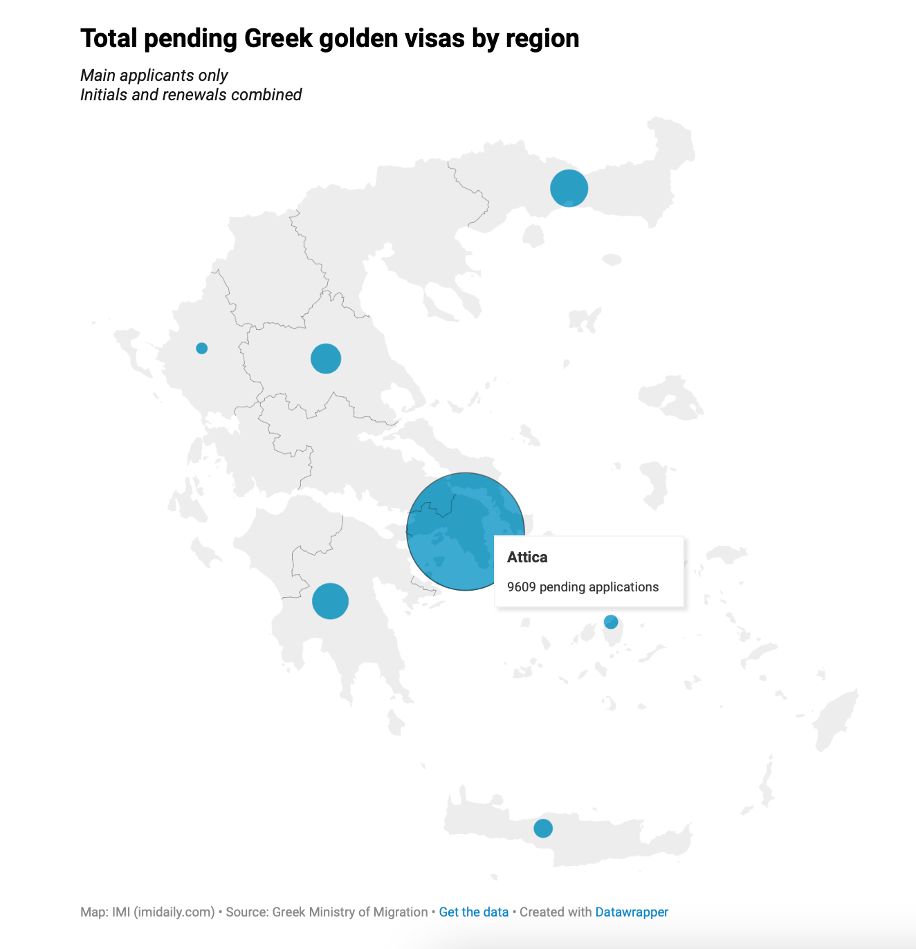 Về mặt địa lý, khu vực Attica vẫn là nơi tập trung lượng hồ sơ đang chờ xử lý lớn nhất, tiếp theo là vùng Trung – Đông Macedonia và Thrace.