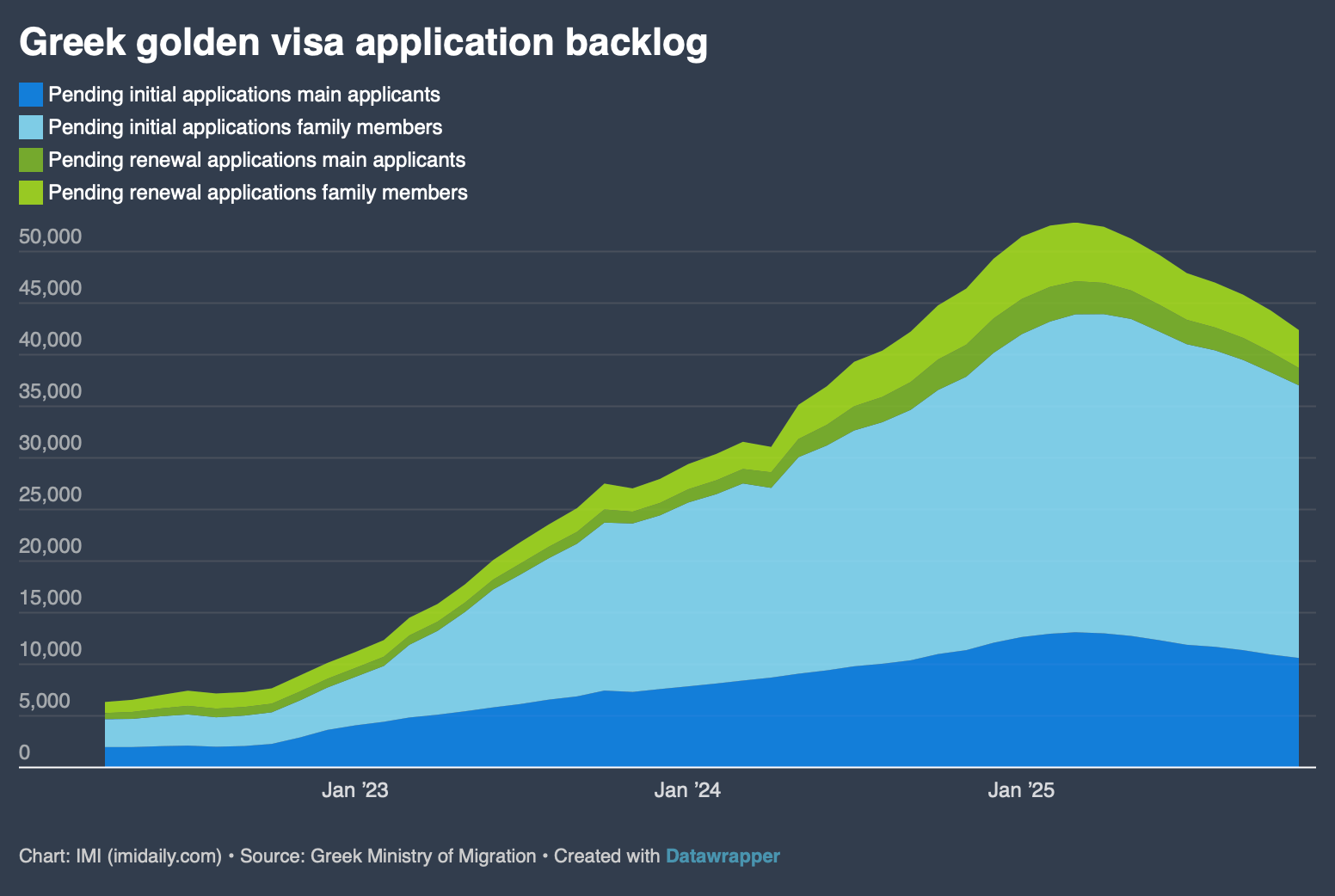 Tính đến tháng 11/2025, số lượng hồ sơ Golden Visa Hy Lạp đang chờ xử lý đã giảm xuống còn 42.390 bộ. Đây là tỷ lệ giải quyết hồ sơ theo tháng cao nhất kể từ khi Hy Lạp bắt đầu cải thiện quy trình vào tháng 3.