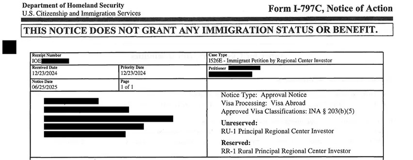 Đơn I-526E của nhà đầu tư được chấp thuận chỉ trong 6 tháng