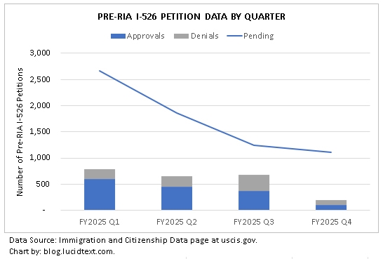 Vẫn còn một số ít đơn I-526 cũ đang chờ xử lý, nhưng USCIS đã cắt giảm đáng kể hoạt động xử lý loại đơn này trong Quý 4